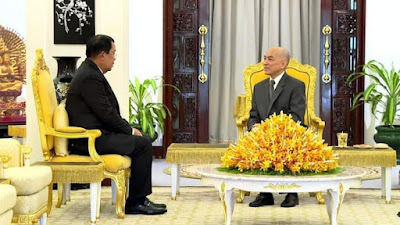 ម្តេចអគ្គមហាសេនាបតីតេជោ ហ៊ុន សែន នាយករដ្ឋមន្ត្រីនៃព្រះរាជាណាចក្រកម្ពុជា អញ្ជើញចូលក្រាបថ្វាយបង្គំគាល់សម្តេចព្រះបរមនាថ ព្រះមហាក្សត្រនៃព្រះរាជាណាចក្រកម្ពុជា